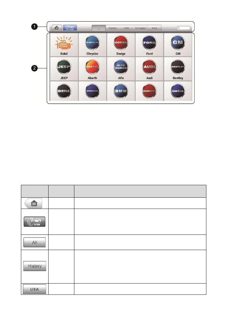 The operations of the Toolbar buttons at the top of the screen are listed and