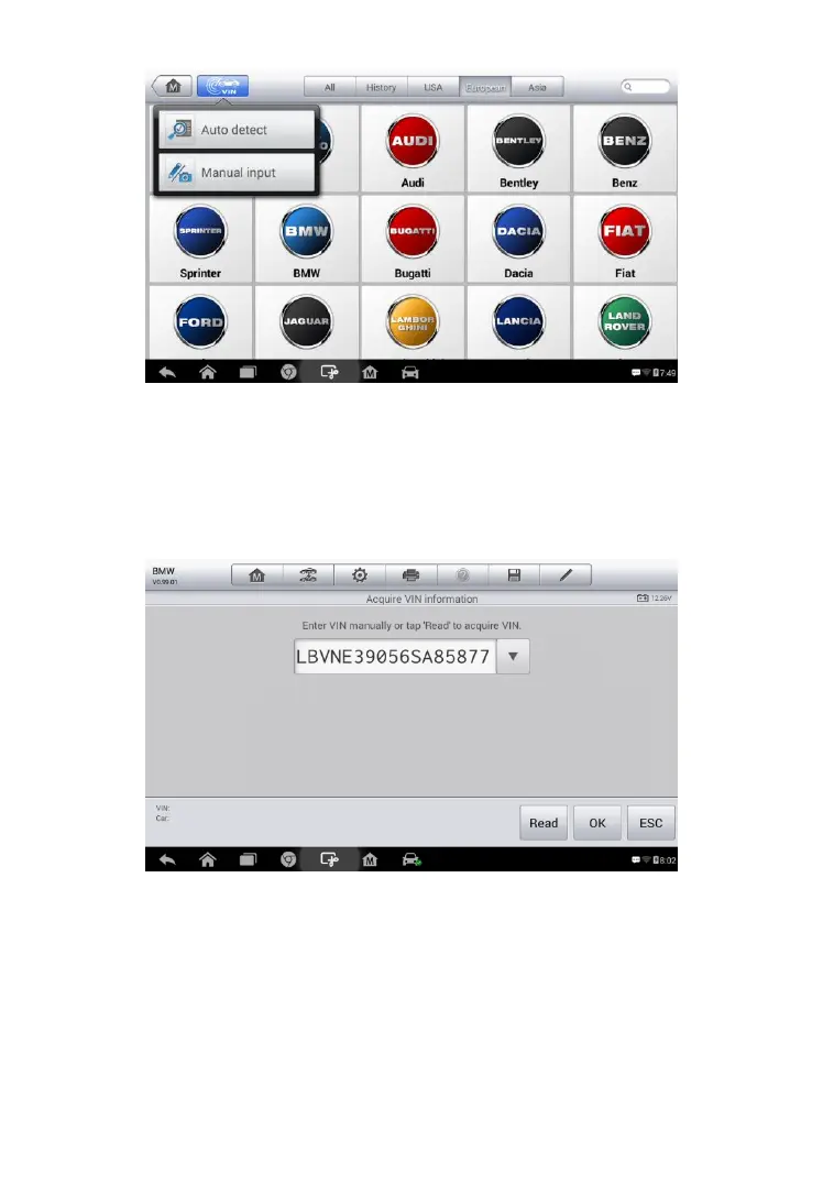 the vehicle VIN, tap OK at the bottom to confirm the vehicle VIN.