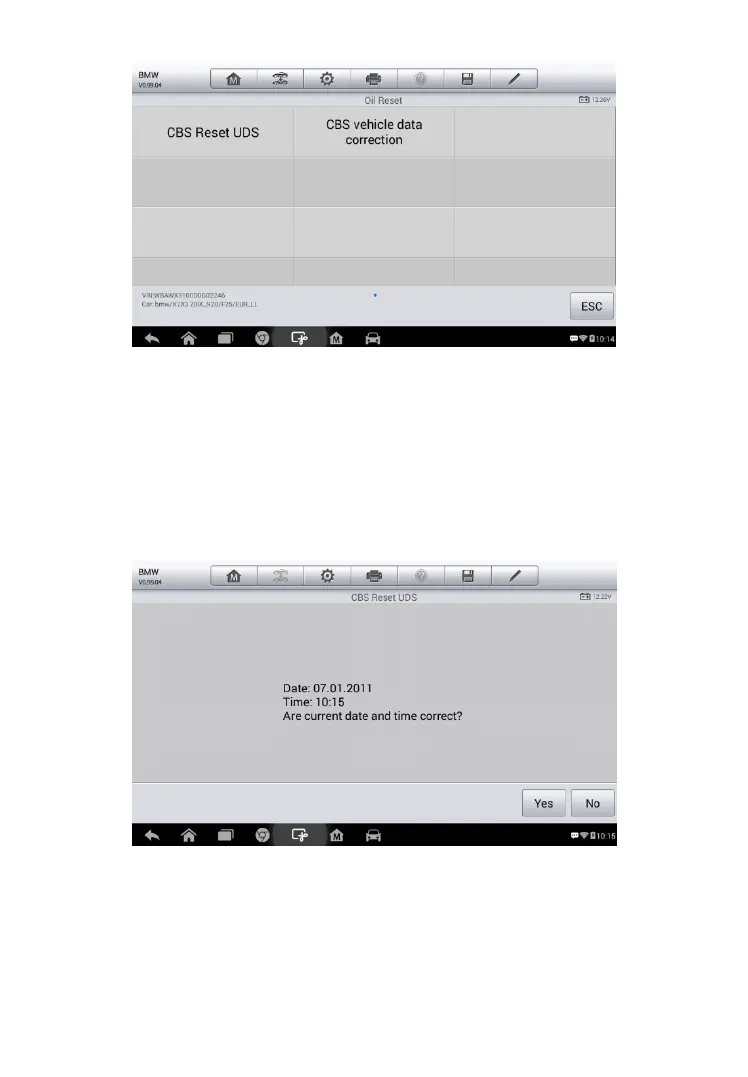 5. Tap CBS Reset UDS on the Oil Reset function list to start the