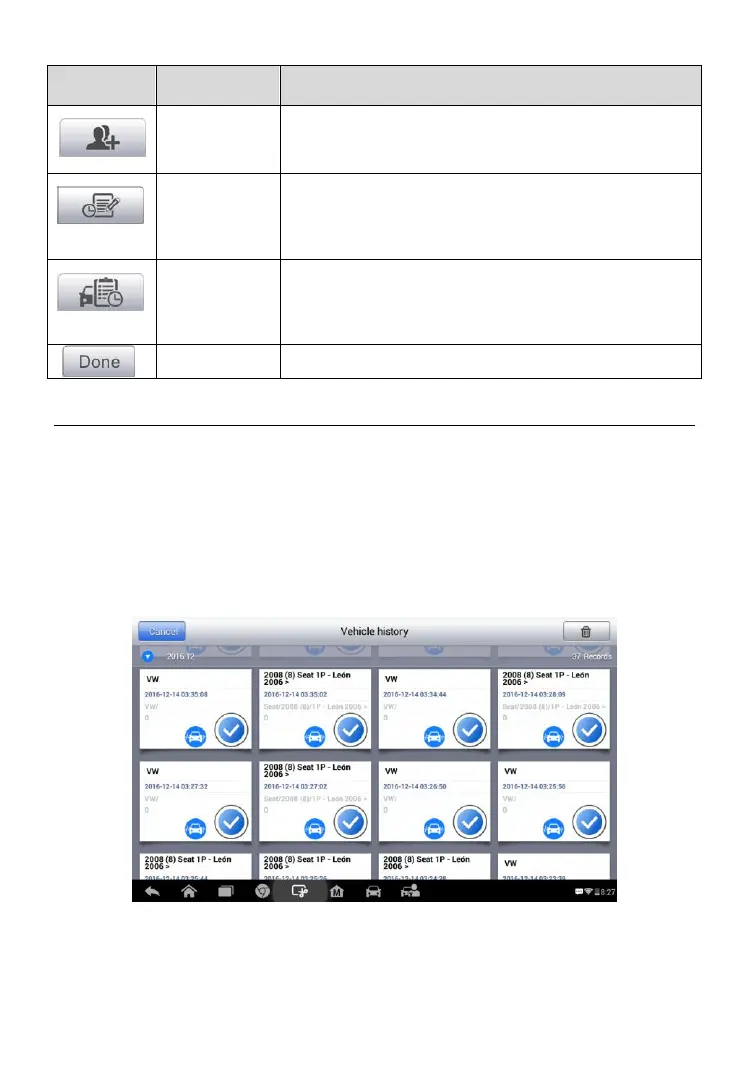 Touching this button opens the Vehicle History