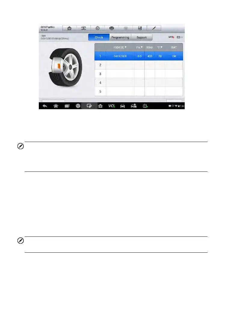 original sensors such as sensor ID, tire pressure, tire temperature, sensor