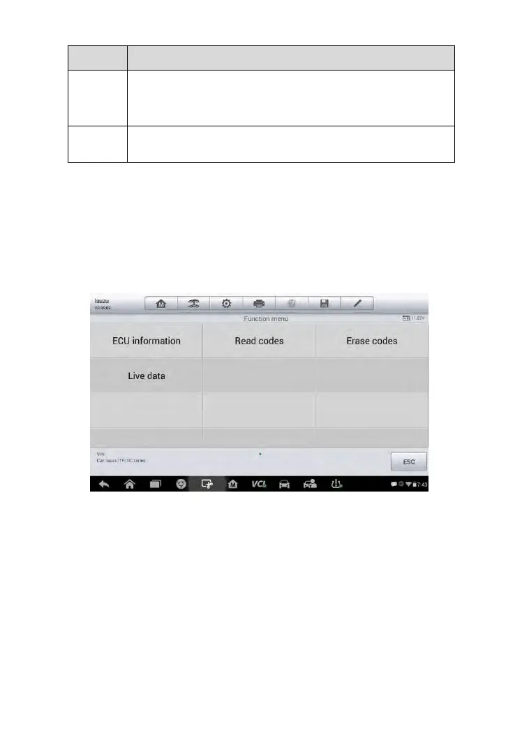 The Function Menu options vary slightly for different vehicles. The function