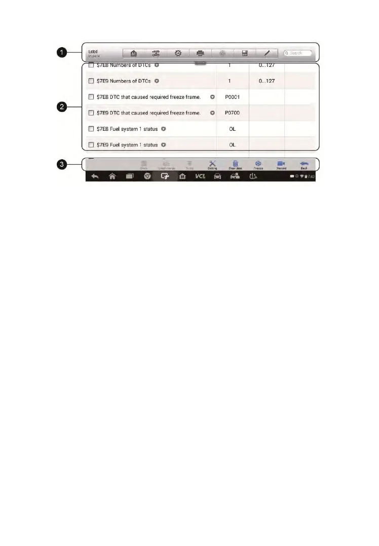 1. Diagnostics Toolbar Buttons – tap the drop-down button at the top