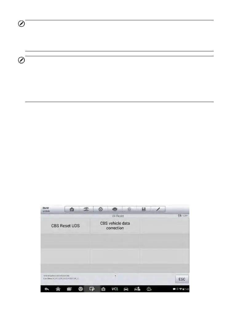 2. Tap Oil Reset button and wait for the vehicle manufacturer screen.