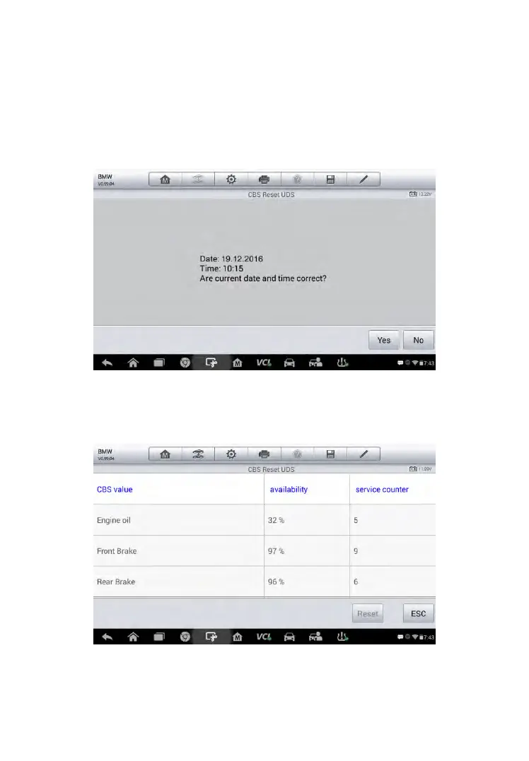 5. Tap CBS Reset UDS on the Oil Reset function list to start the