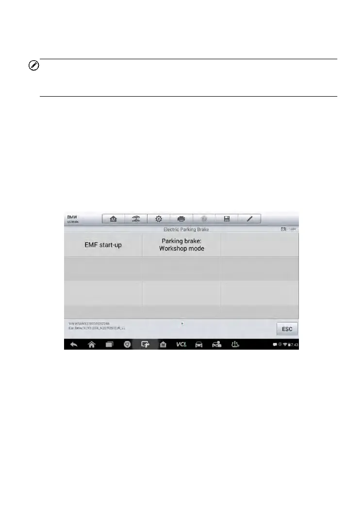 2. Tap EPB button and wait for the vehicle manufacturer screen. You