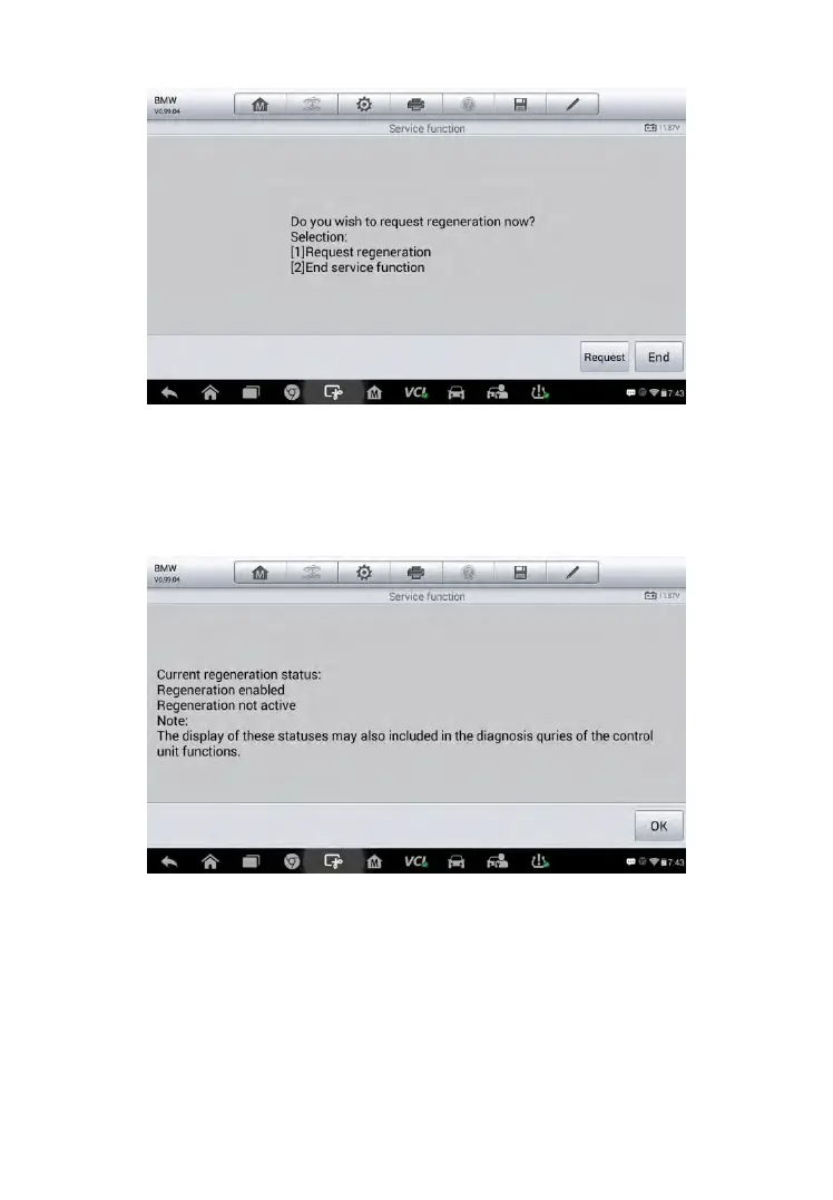 filter regeneration step by step. Follow the onscreen instructions and tap