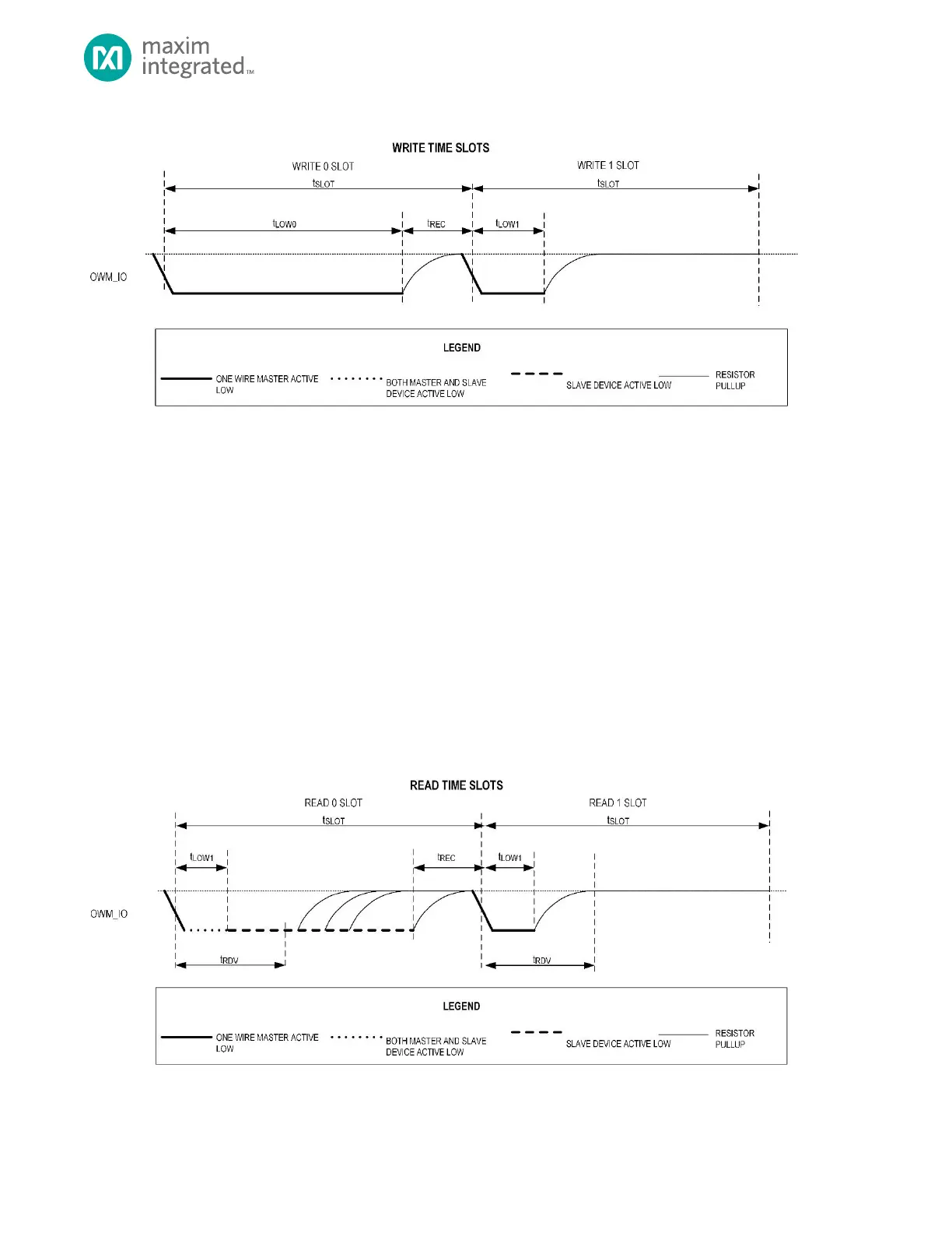 begins with a falling edge. From the master’s perspective, this time slot is transmitted identically to the "Write 1 Bit" time