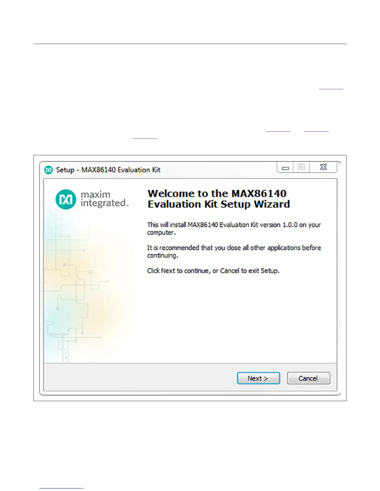Figure 1. Setup MAX86140 EVSYS GUI Software Step 1