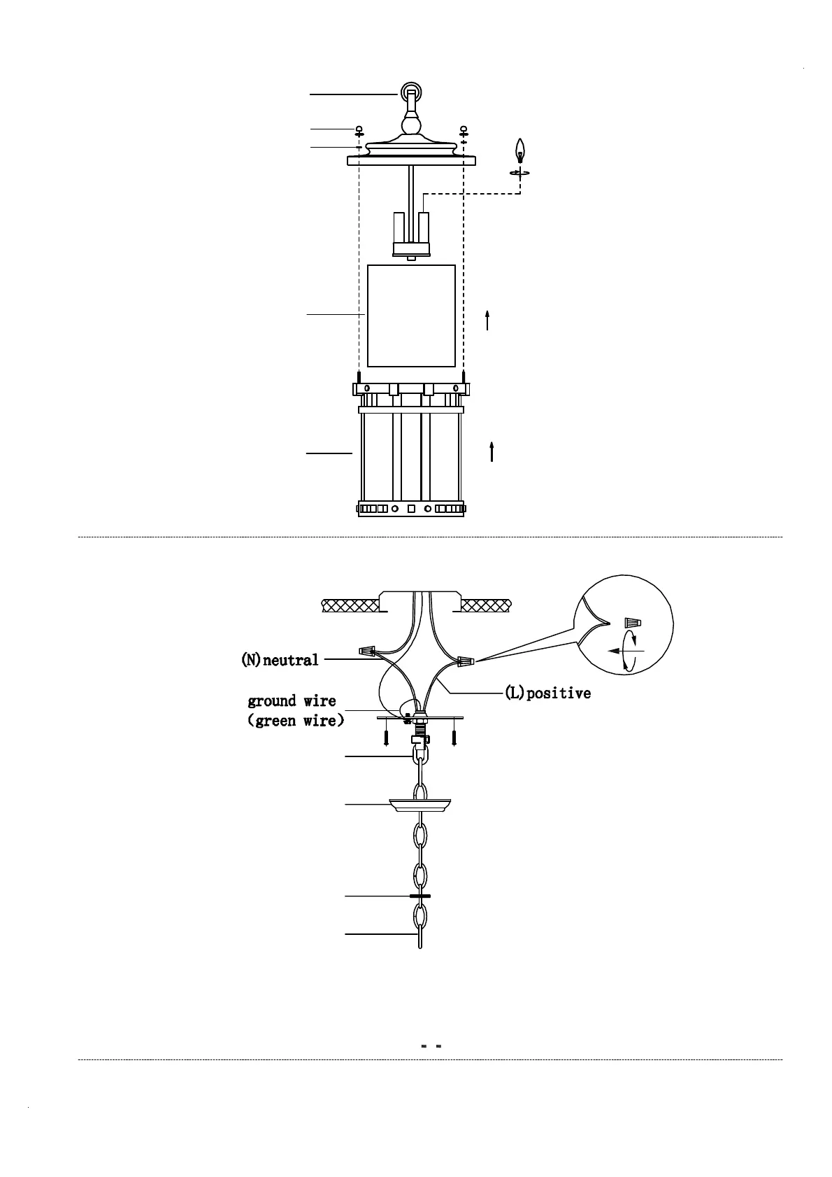top of fixture.Install nipple and cross bar into top of chain loop.