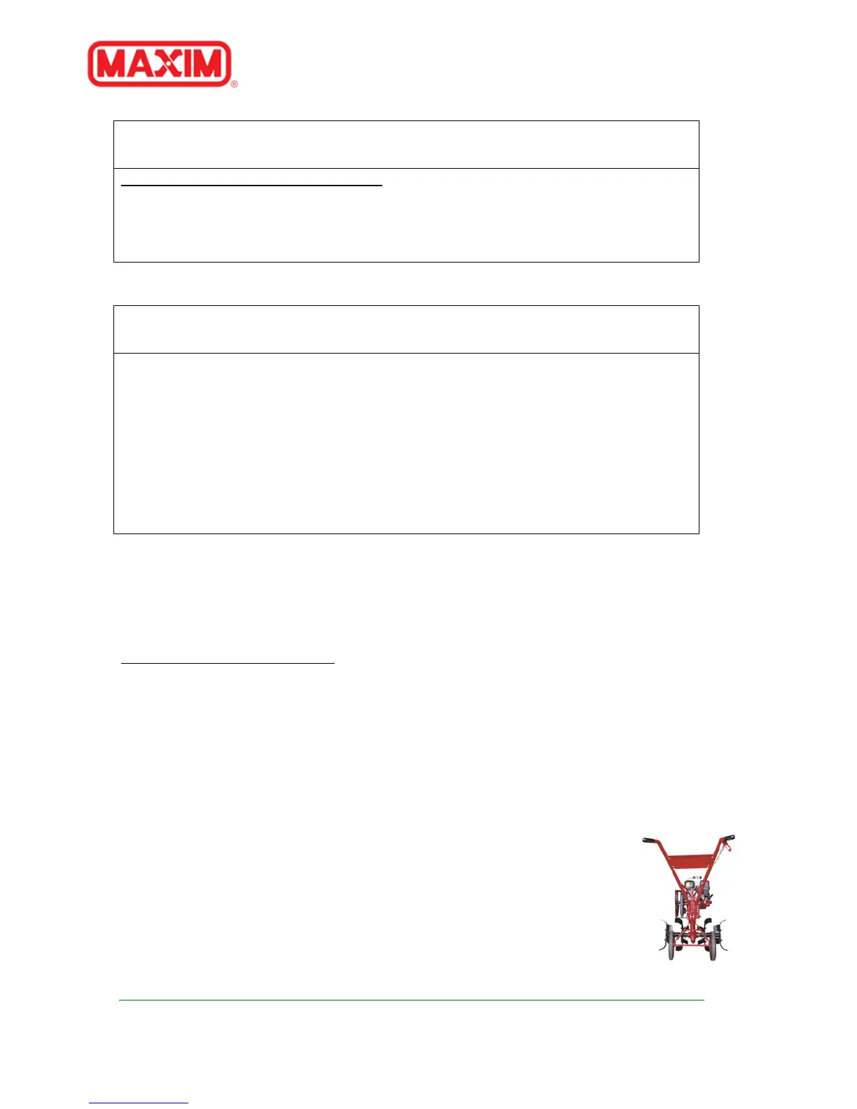 IMPORTANT: This is a motorized rotary tiller that works the soil by means of rotating tines. It is
