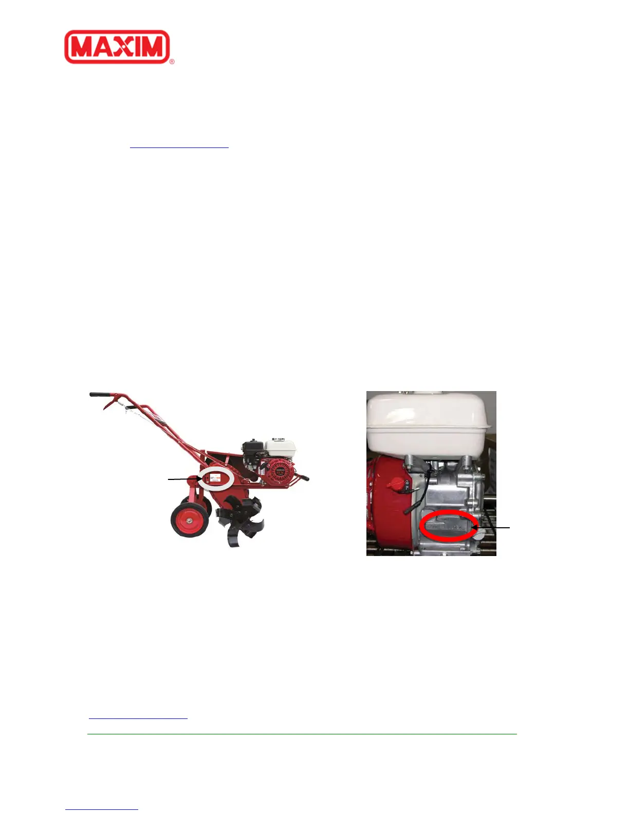 Your dealer and all of us at Maxim want you to be pleased with your tiller. Should you require