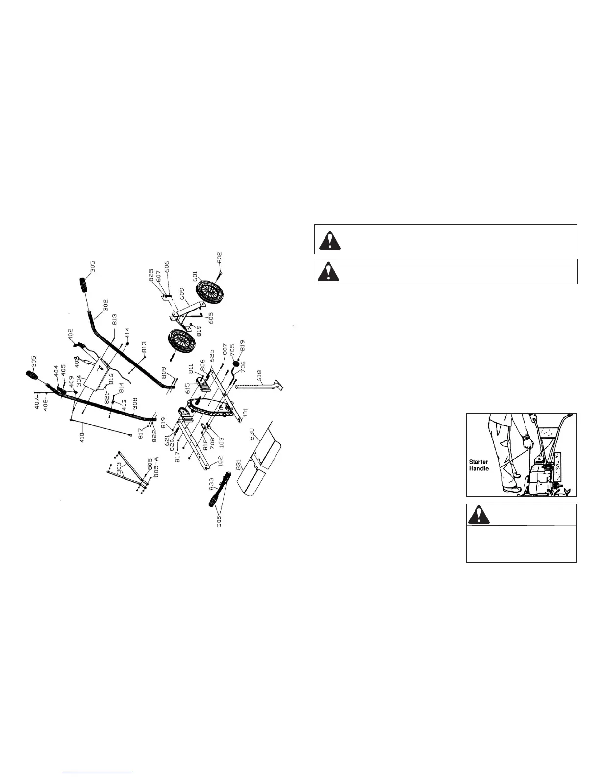 Before starting the engine check that all bolts are tight, and that the tiller is assembled properly. Review