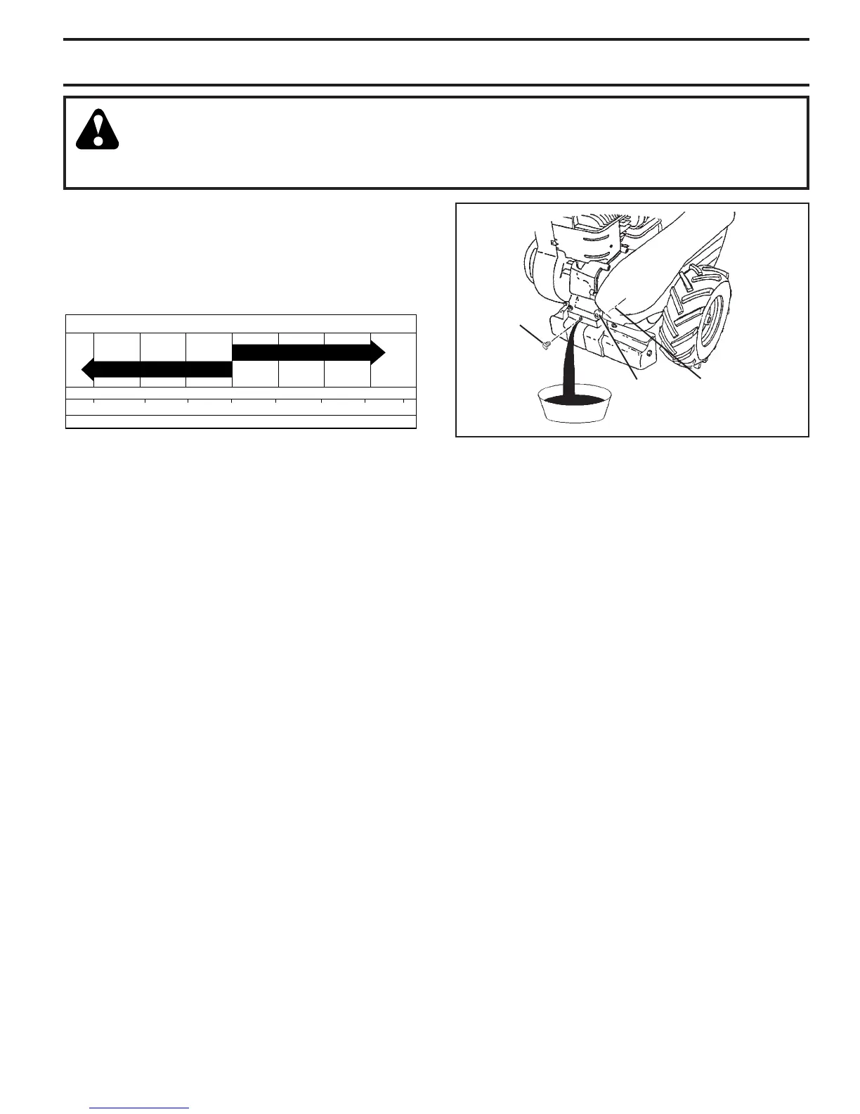 • Tip tiller forward to drain oil.