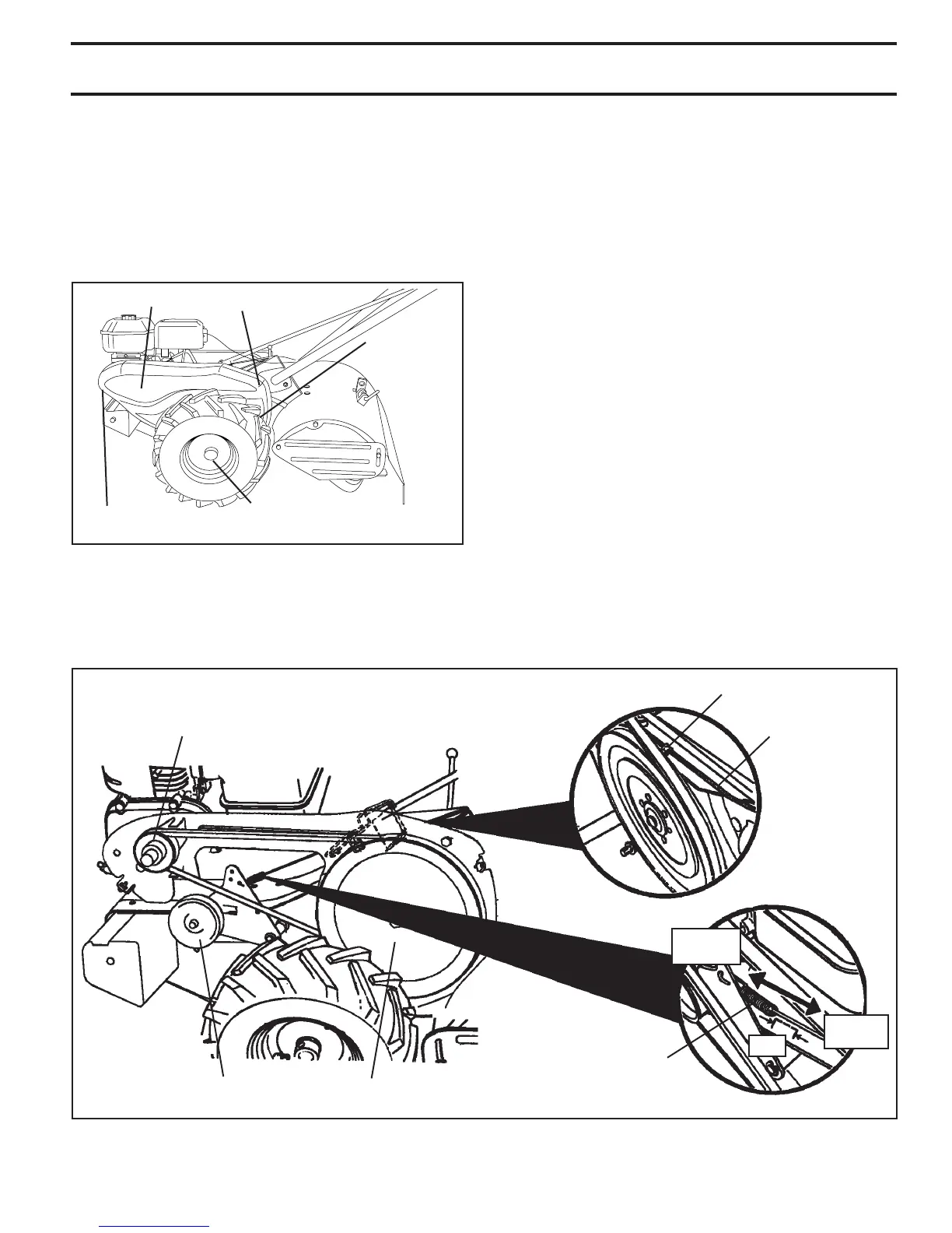 pin from left wheel. Pull wheel out from tiller about 1 inch