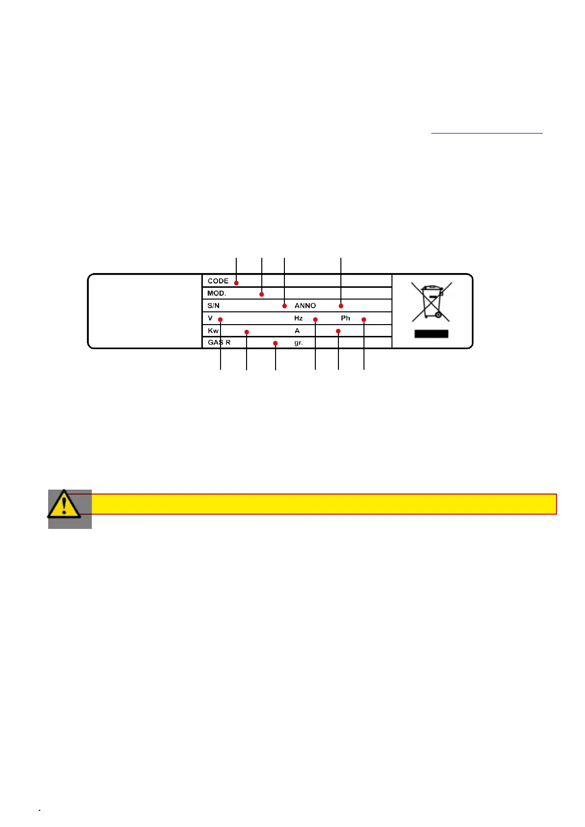 The data plate with CE marking is located at back of the machine and shows all of the data needed for identifcation.