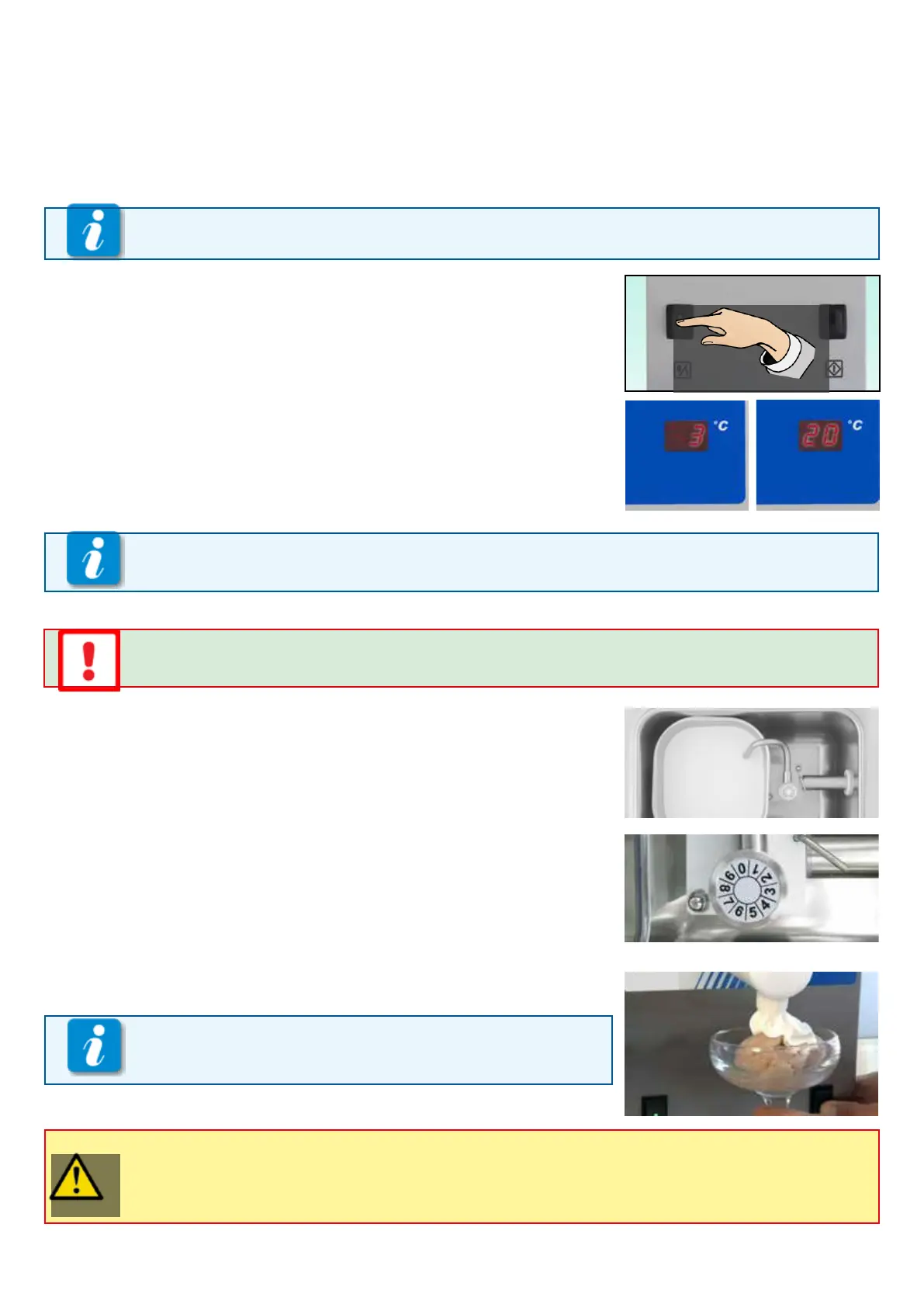 We suggest waiting for the refrigeration tank to cool to a temperature of approximately +4/+5°C,