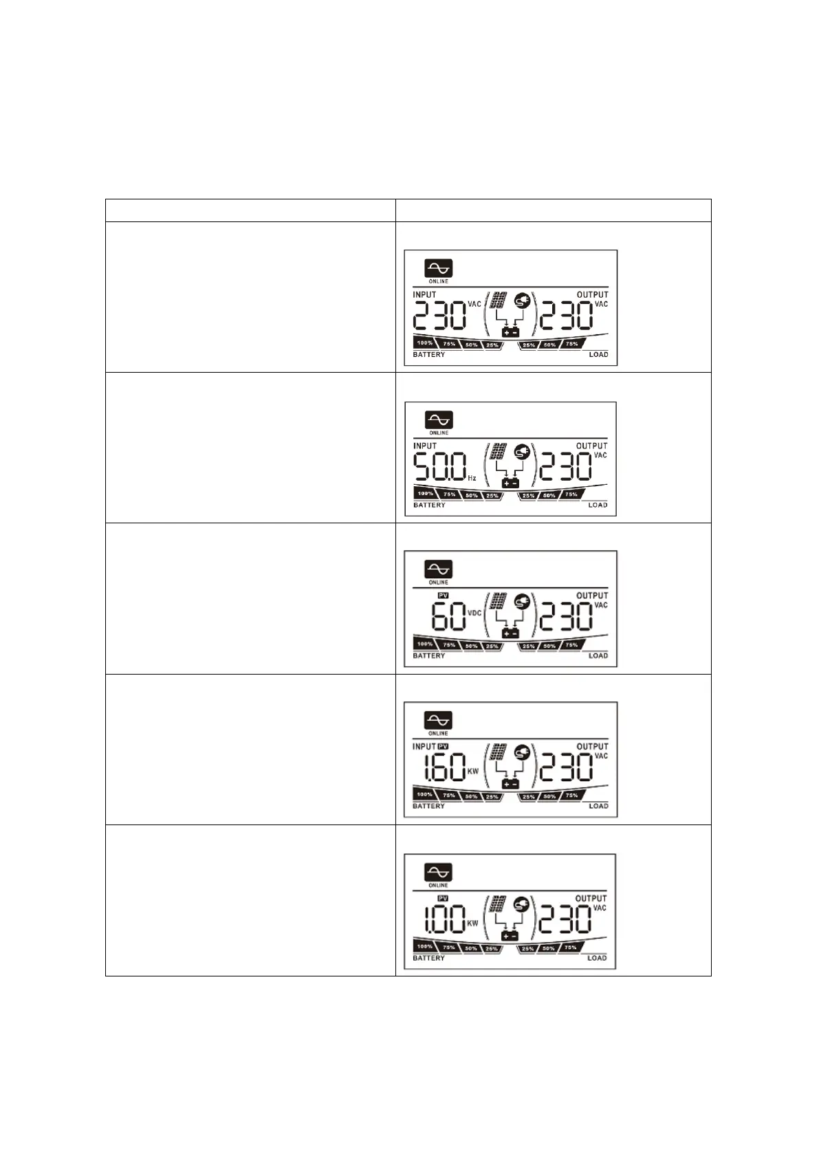 switched to display in order as below: input voltage/output voltage, input frequency, PV voltage, total