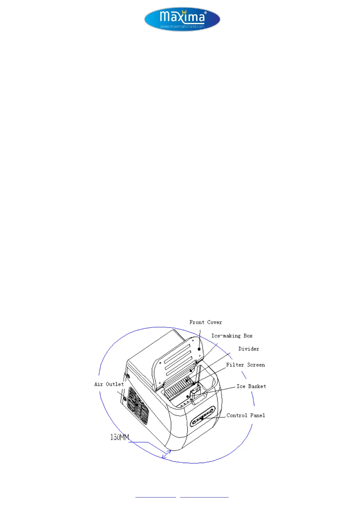 3. Zorg voor genoeg ruimte (10cm) om het apparaat heen, voor gemakkelijke toegang, reiniging en ventilatie.