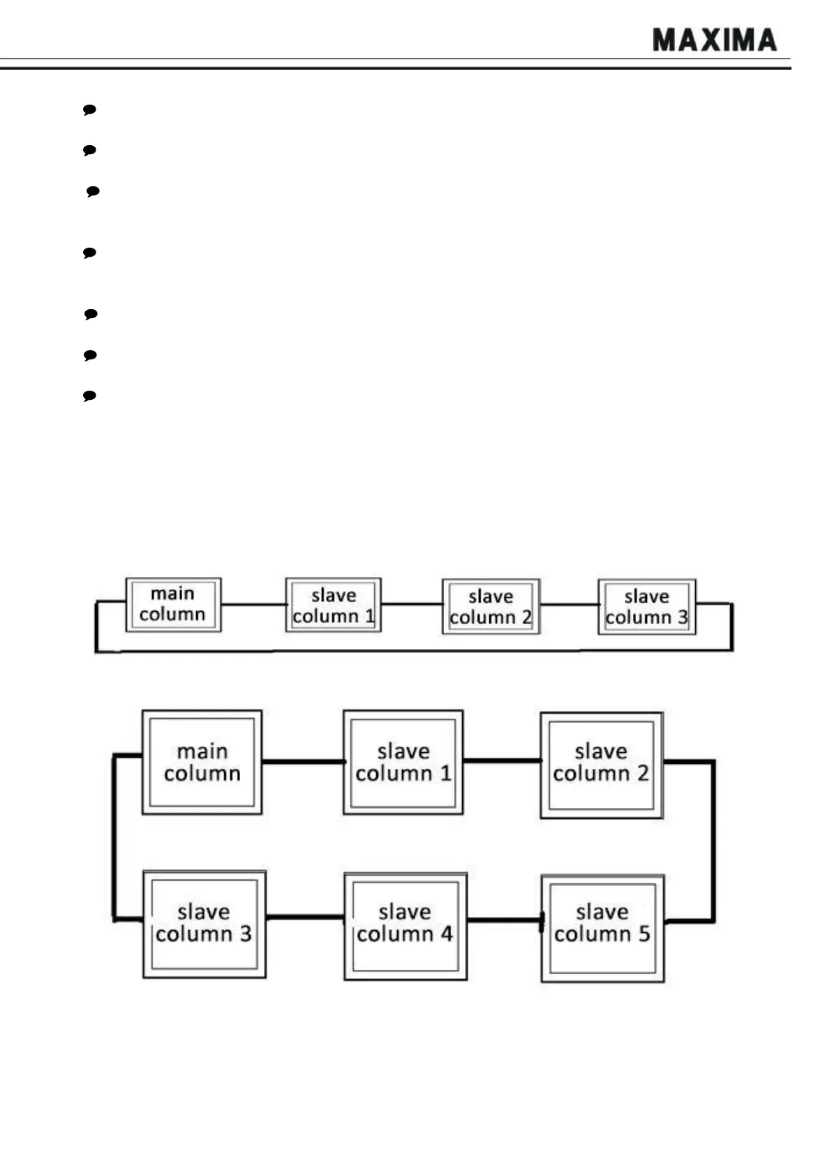 Rise: Unloaded, press and hold the “UP” button at the master control box, check if all the