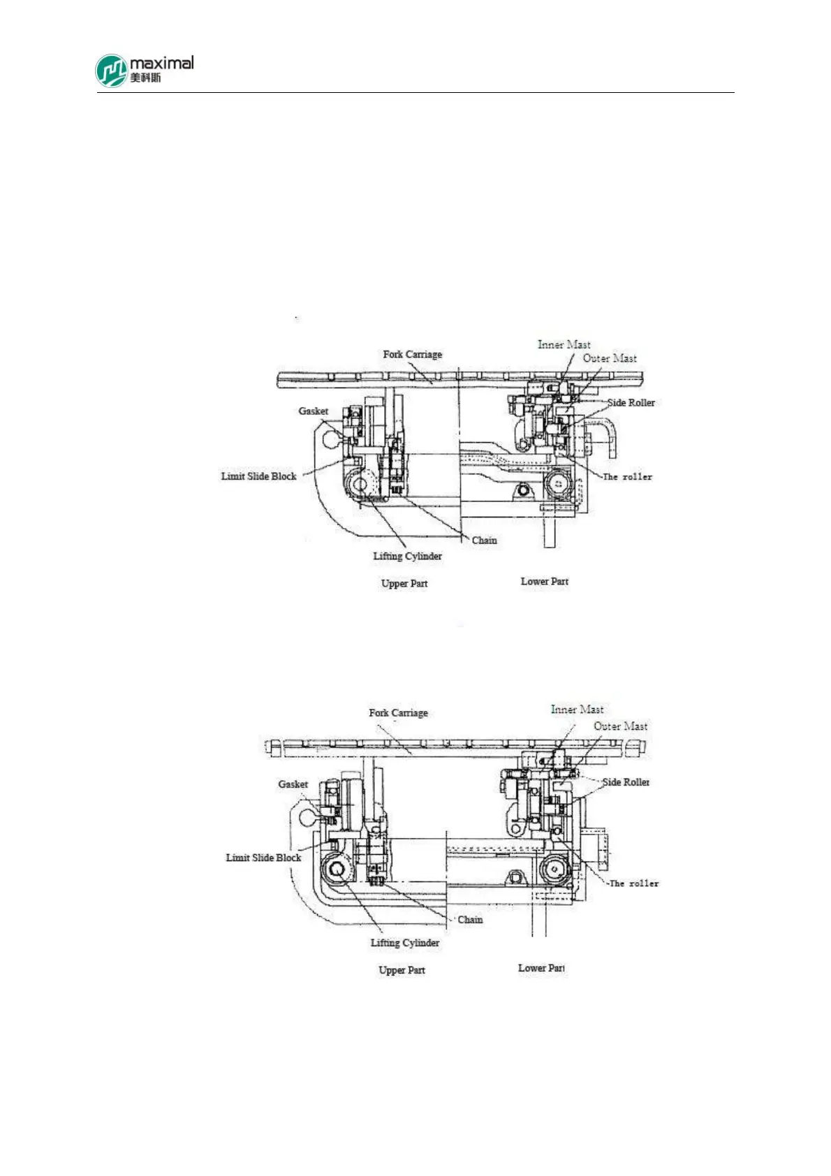 Fig 9-6, and Fig 9-7. The main roller bears the main load in the front and rear parts of forklift truck,