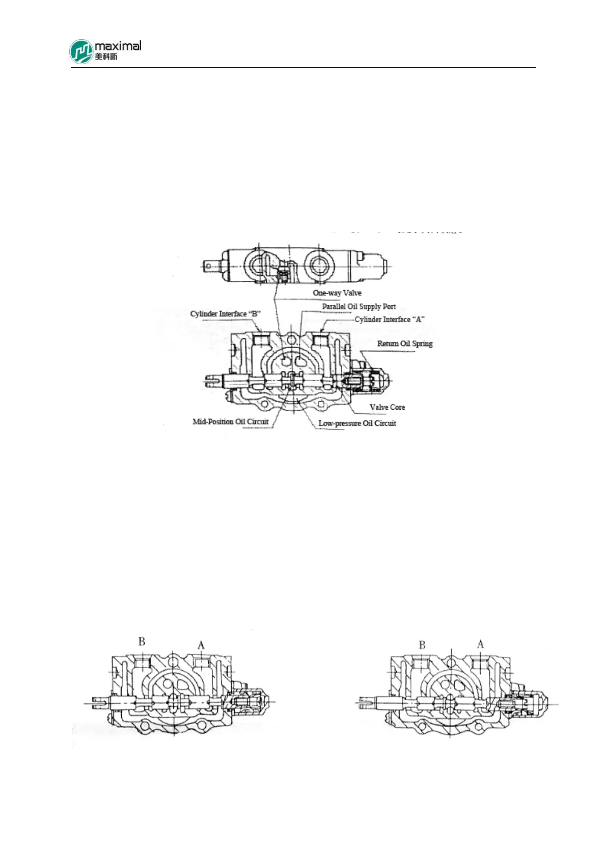 port bursts through (load) the one-way valve and flows into the joint B of cylinder, and the return oil