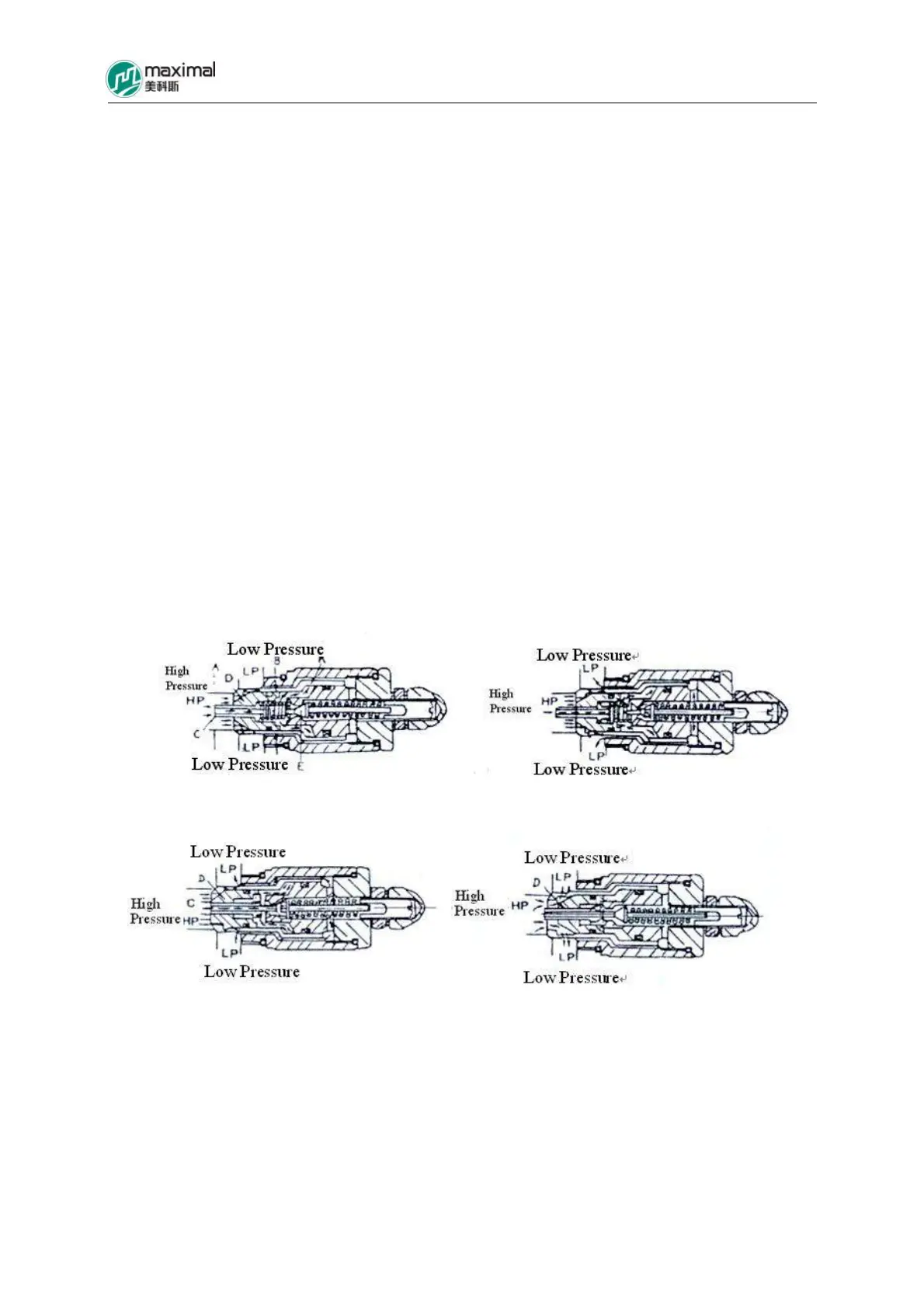 (3)When the pilot valve core E is opened, the pressure after the valve core C drops, and therefore, the