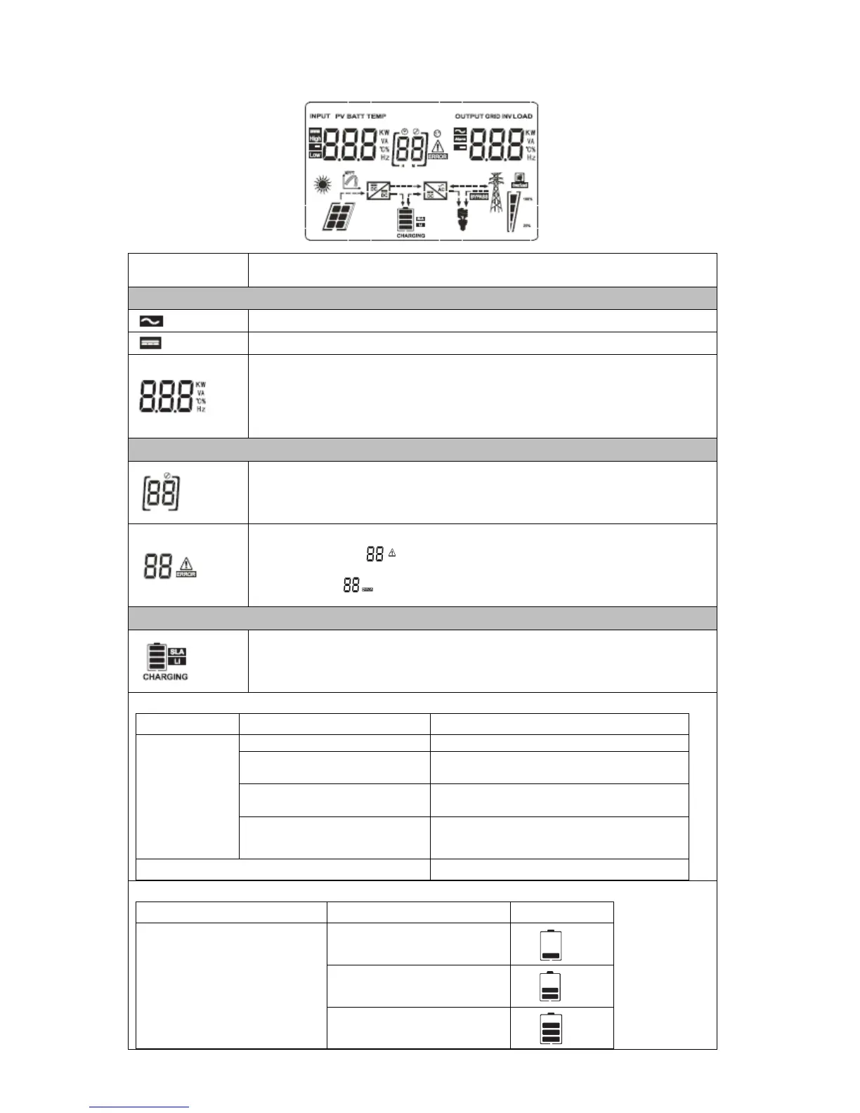 Indicate input voltage, input frequency, PV voltage, battery voltage and