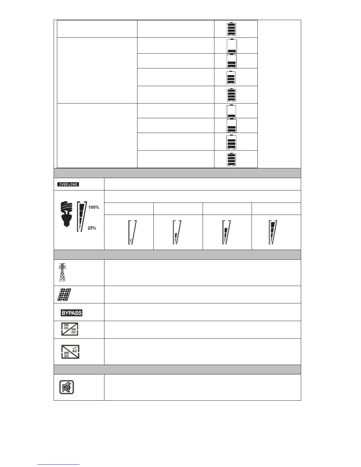 Indicates the load level by 0-24%, 25-49%, 50-74% and 75-100%.