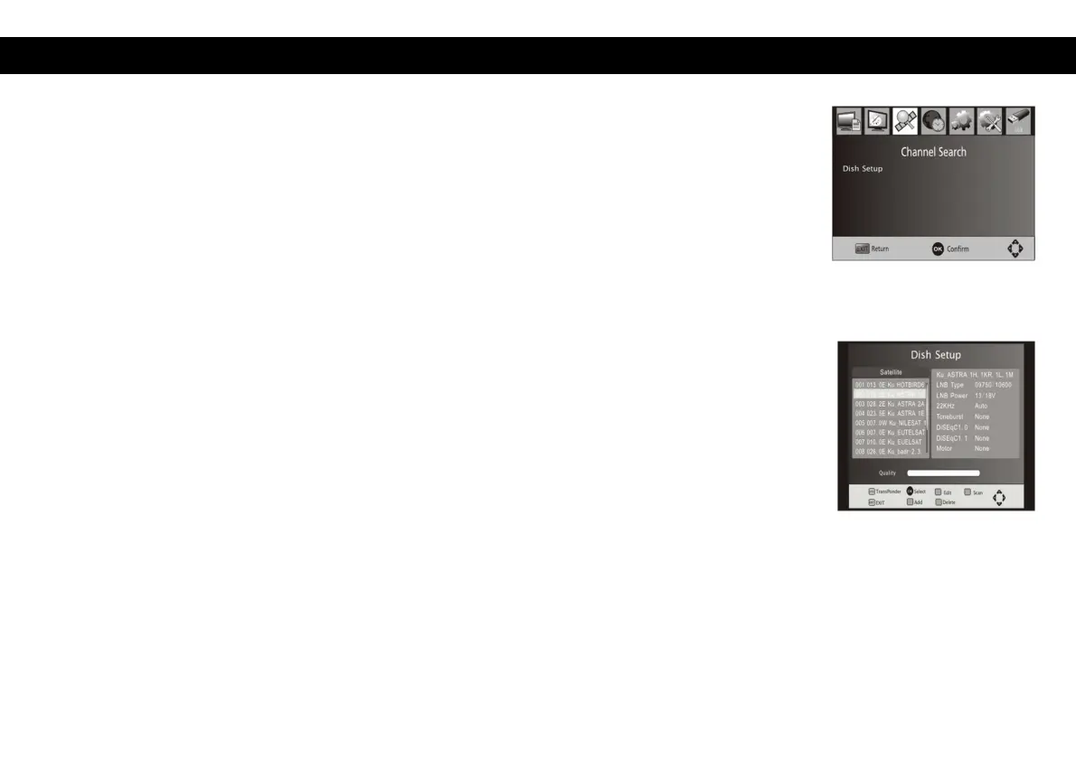 LNB Power: Tryck VÄNSTER/HÖGER för att ställa in LNB ström. Standard är
