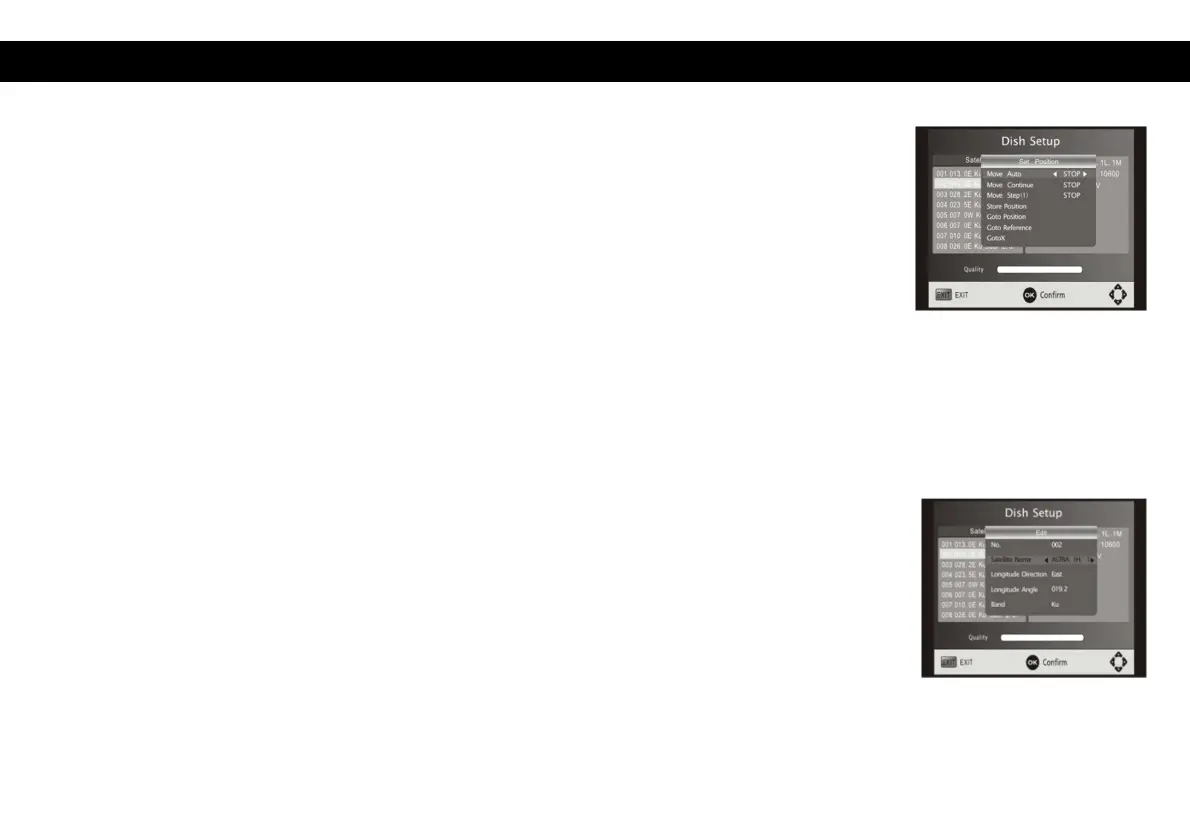Motor: Enable/disable DiSEqC 1.2 command. Then Press OK to show the menu