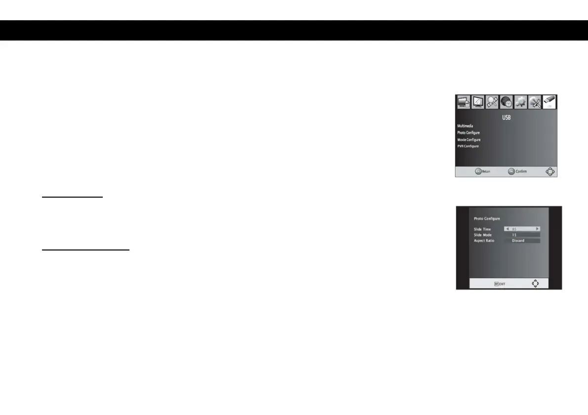 JPEG, and BMP files. The receiver will only support USB media with FAT and