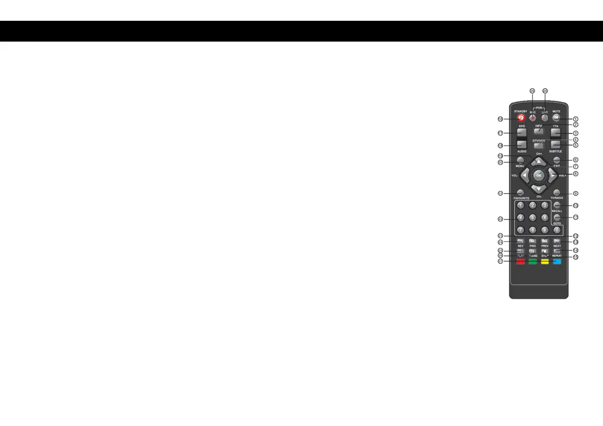 RECALL: Används för att växla mellan de två senaste visade kanaler.