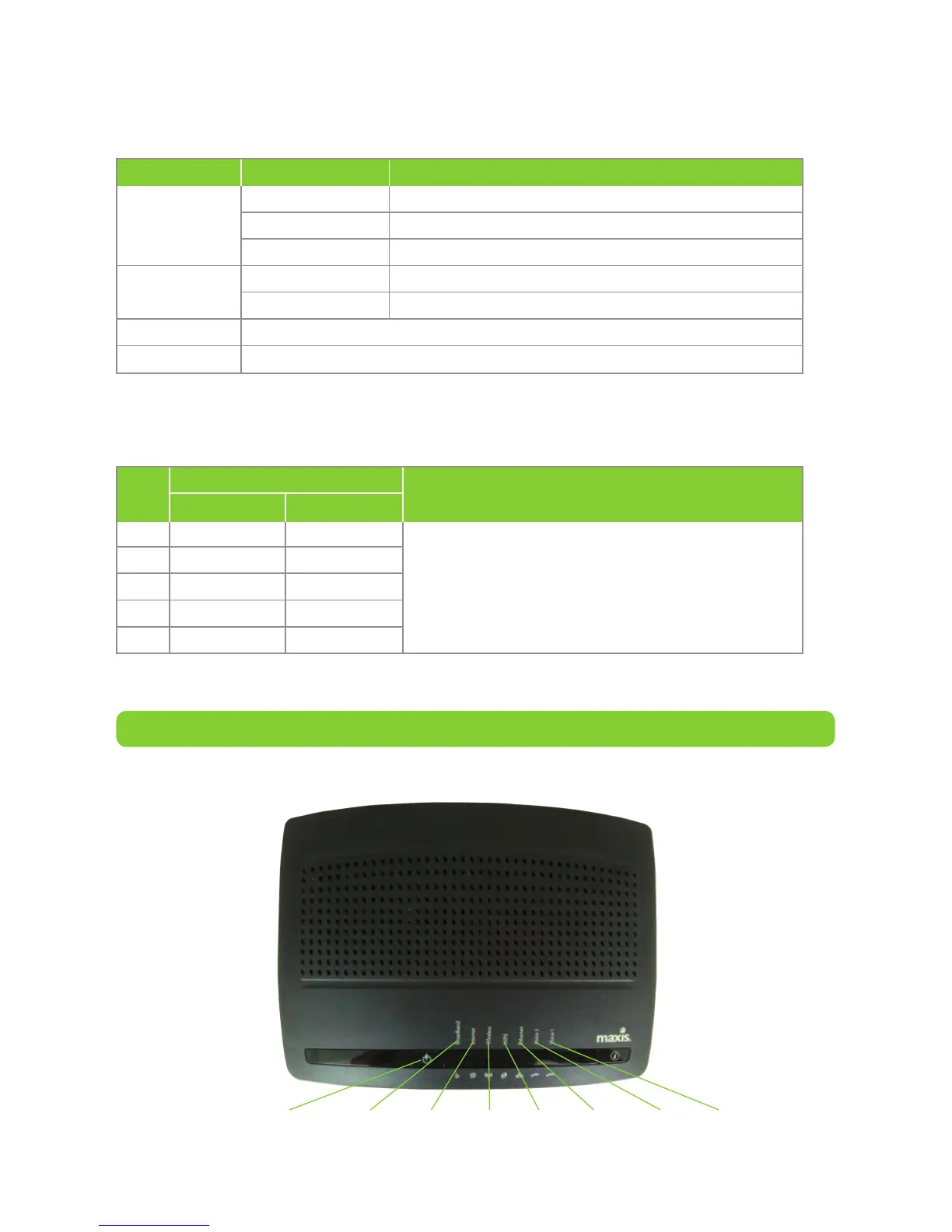 Table 1: LED status indication 1