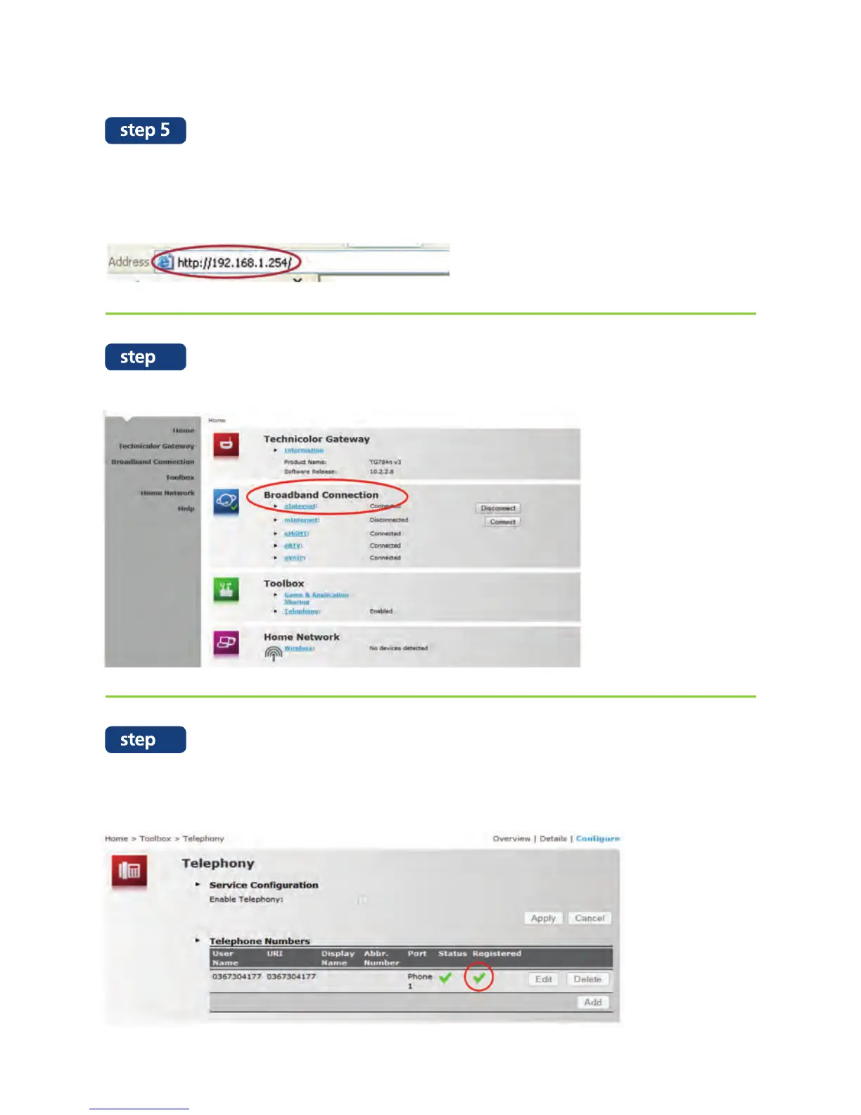 Check that Internet service is “Connected”