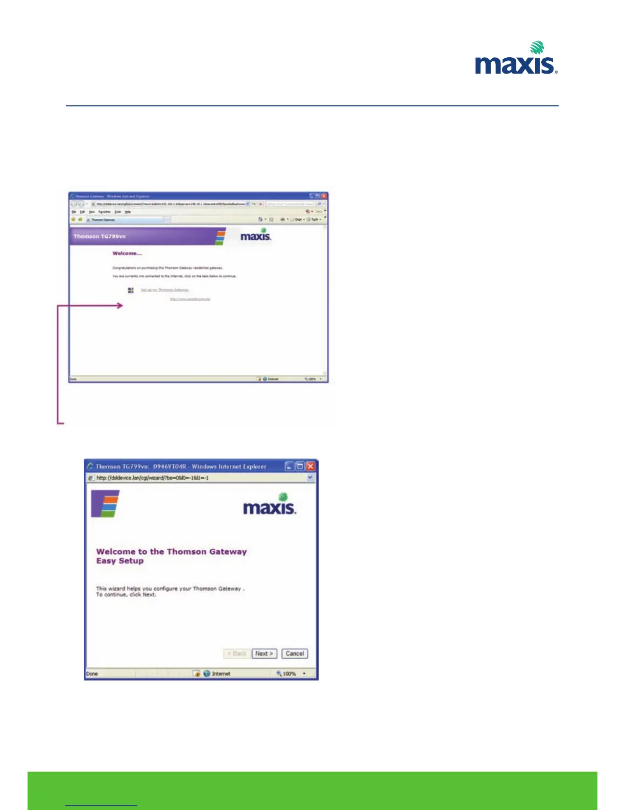 5. Your Internet Browser will automatically redirect to TG799vn welcome page.