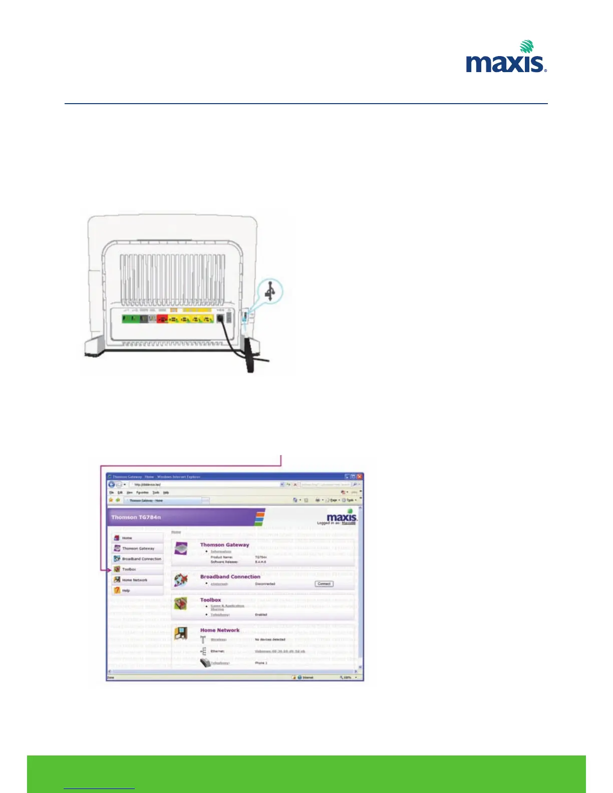 3. The TG799vn GUI appears. And click on Toolbox.