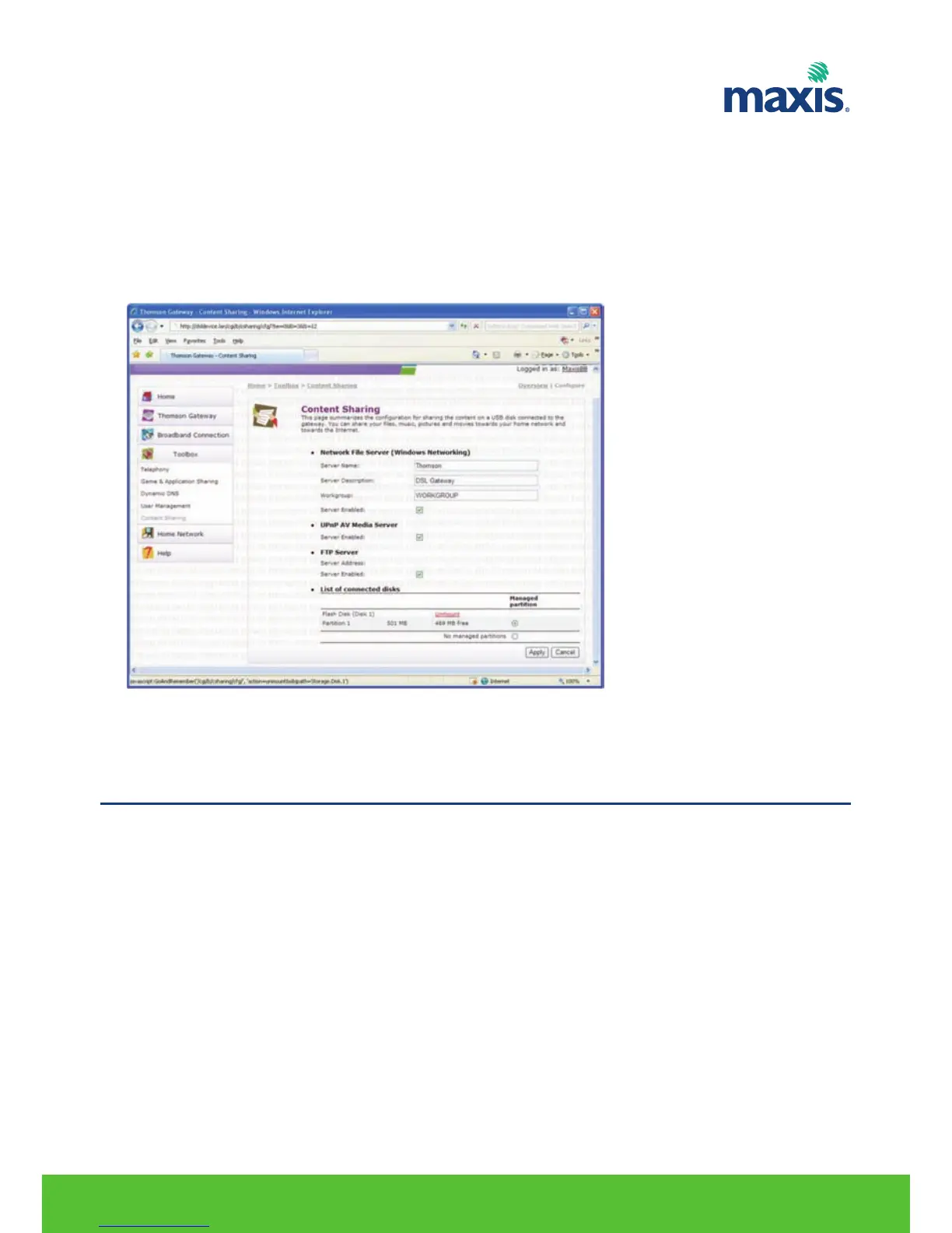 1. Browse to the Residential Gateway GUI.