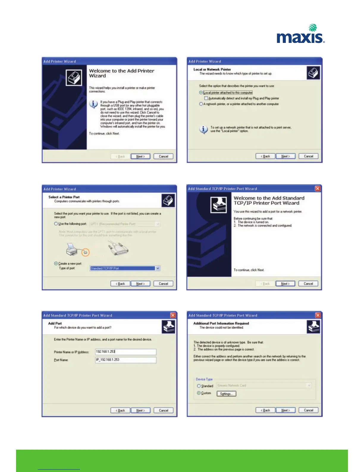 Add printer IP address as 192.168.1.253 Select custom and click on settings