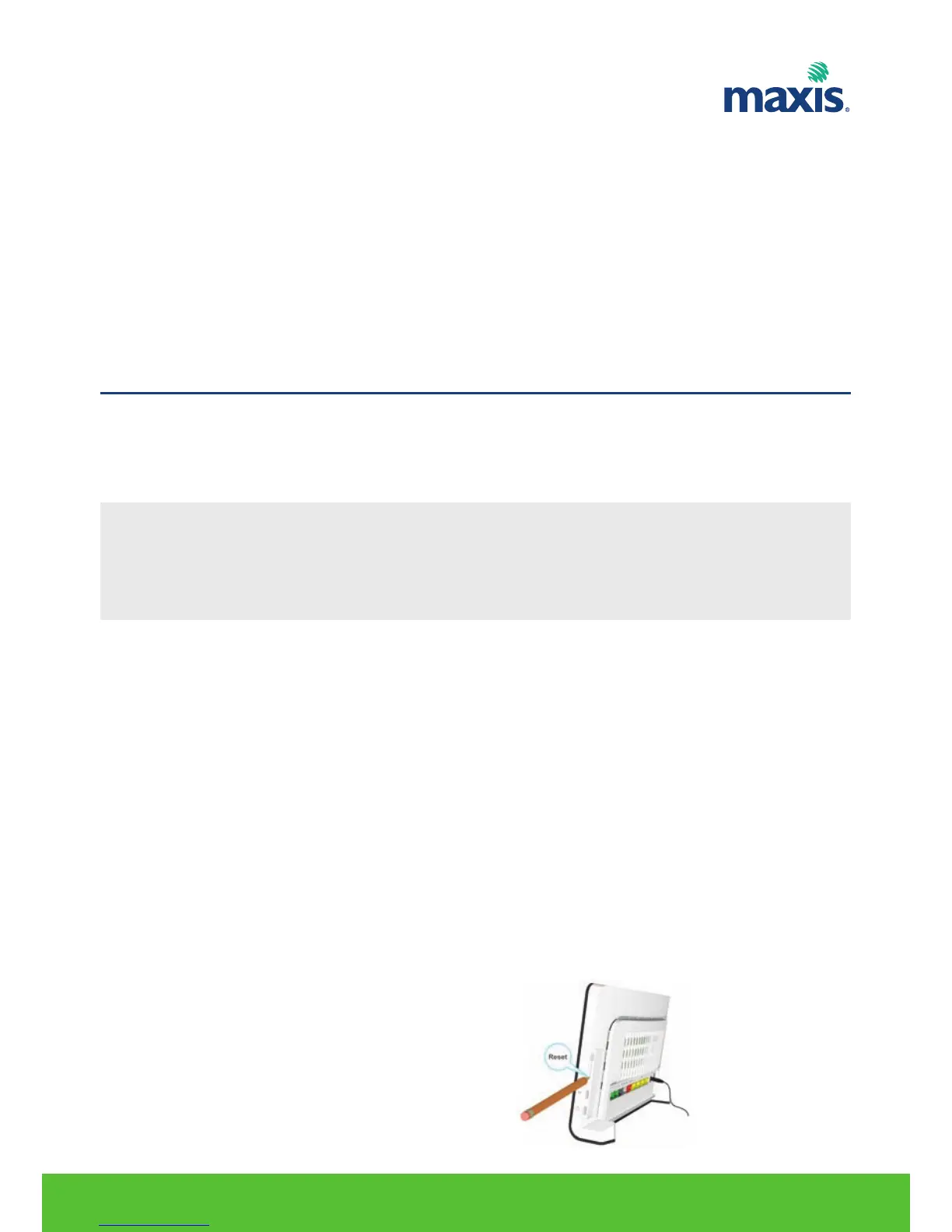 the reset, a reconfiguration of your Residential Gateway will be needed.