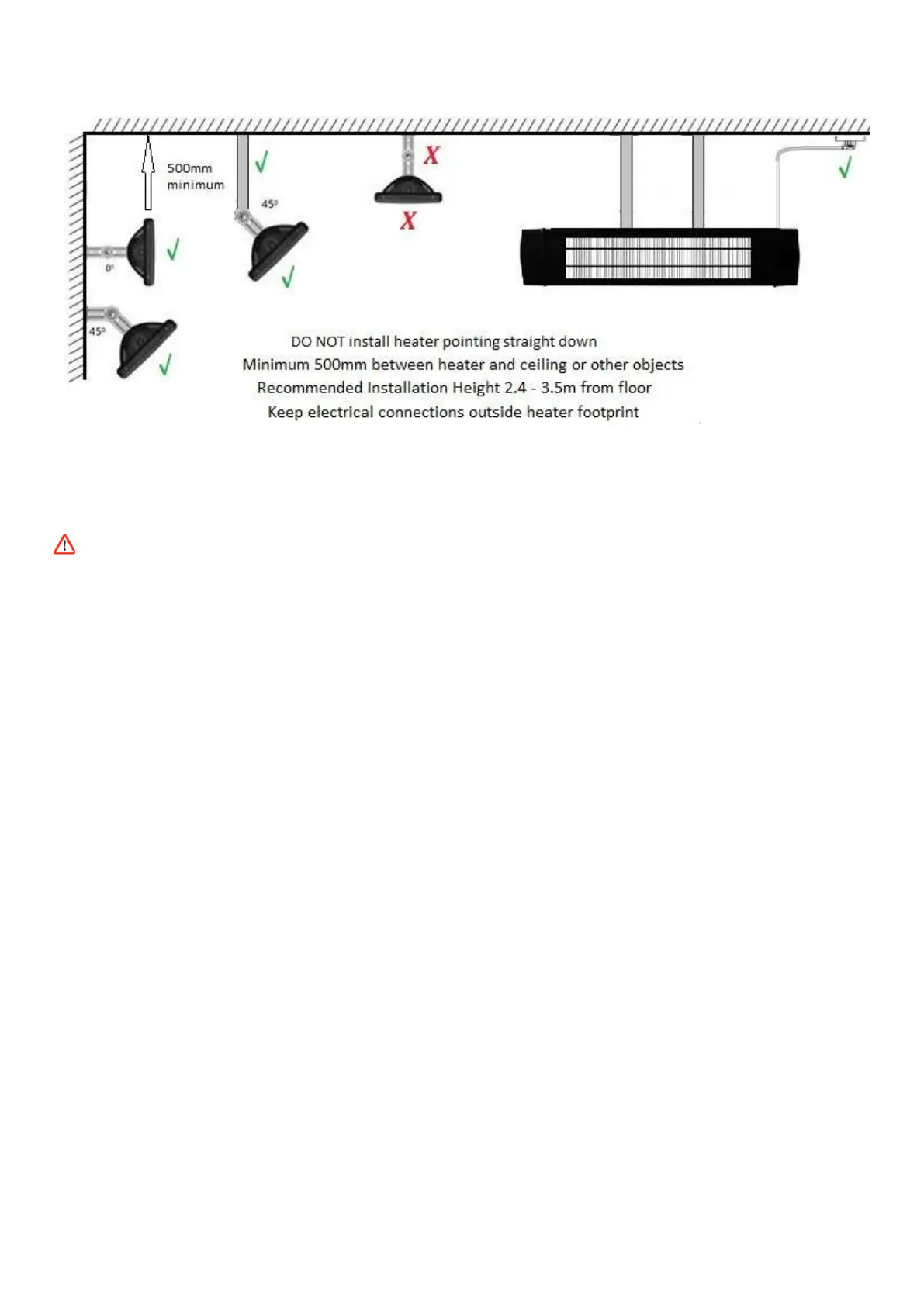 sloping roof), ensure the electrical connection is located below the lowest end of the heater.