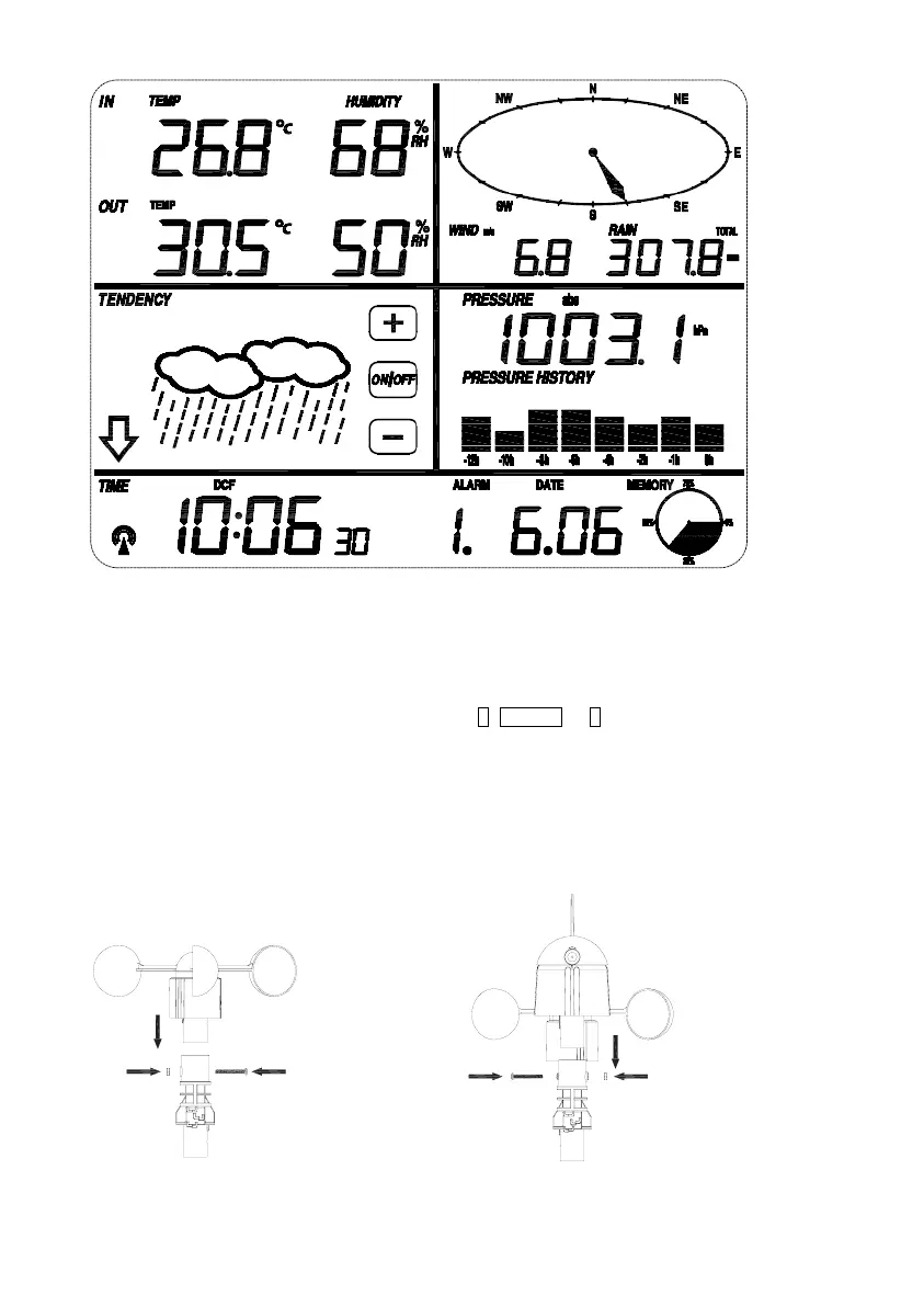 All actions and functions of the weather station are started on the touch screen by slightly touching