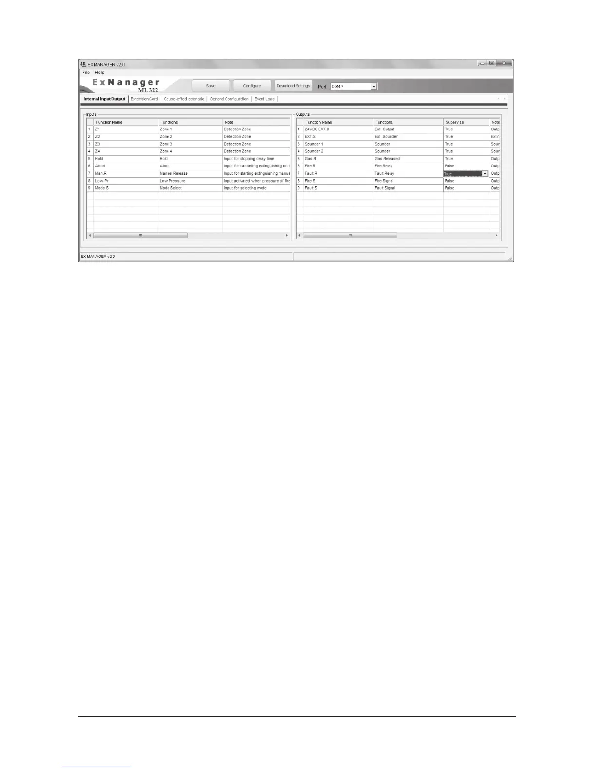 The connection between ML-322 and extinguishing status indication unit should be controlled. Up to 8 pieces of extinguishing