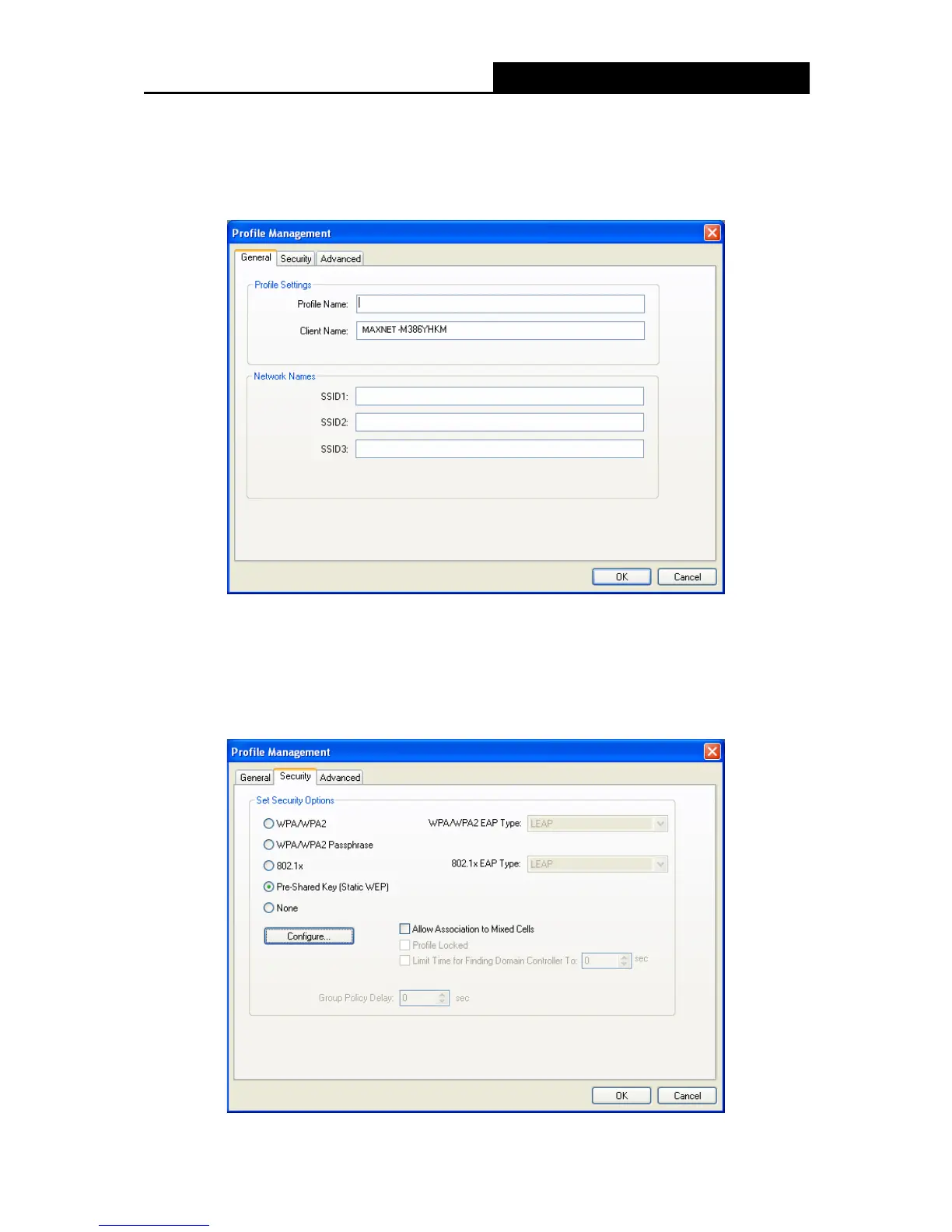 Select the Security tab in the screen above, and then you can edit the fields to configure the profile.