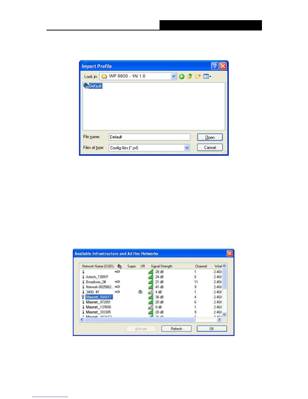 1. Click Scan on the Profile Management screen (shown in XFigure 3-2X), the Available