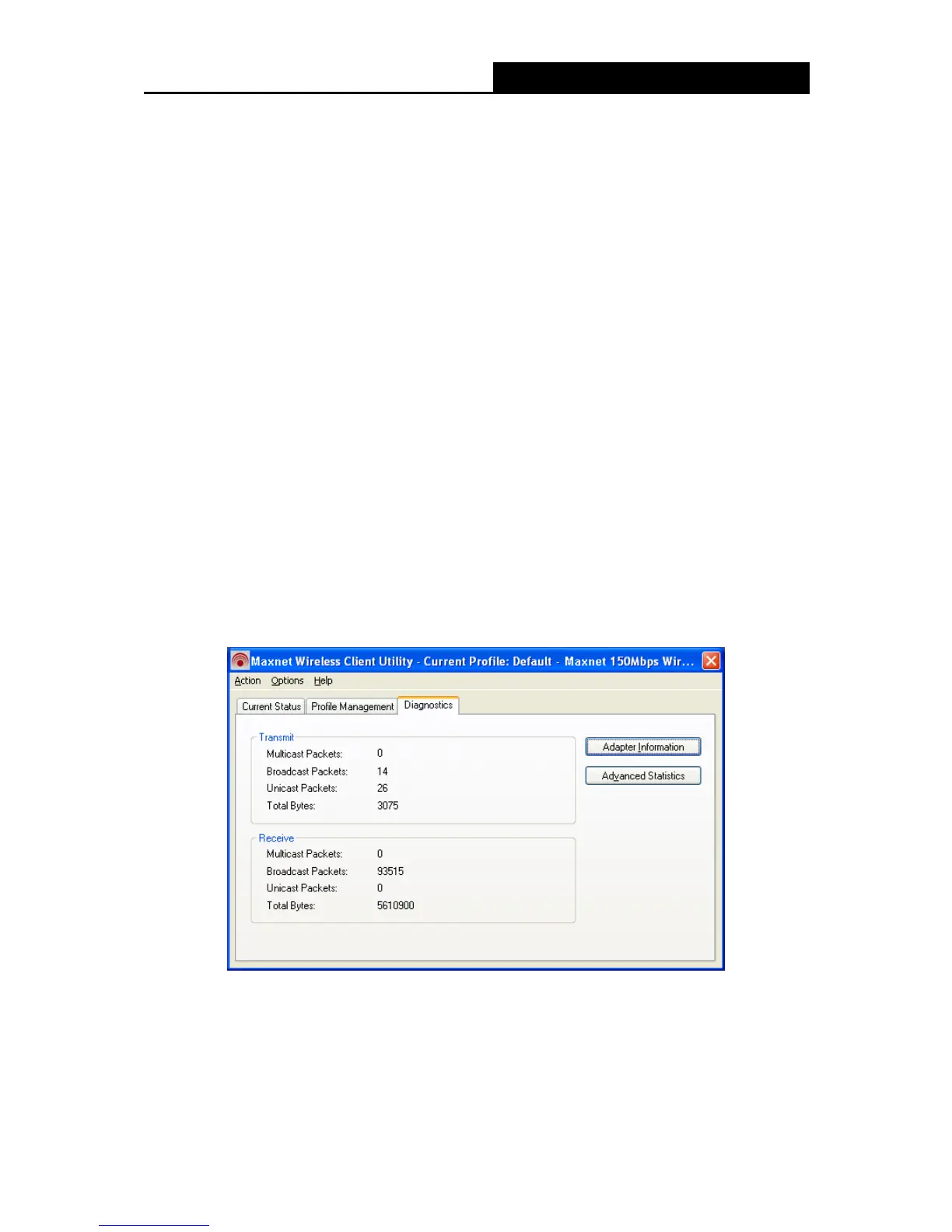 retrieve receiving and transmitting statistics. The Diagnostics tab does not require any