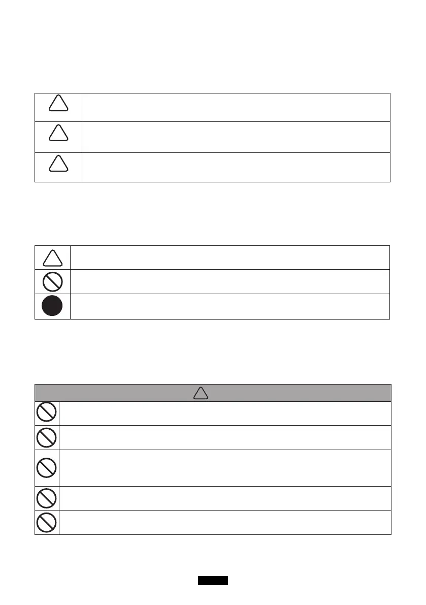 製品の取り扱いにおいて、その行為を禁止するものです。具体的な禁止内容は図記号の