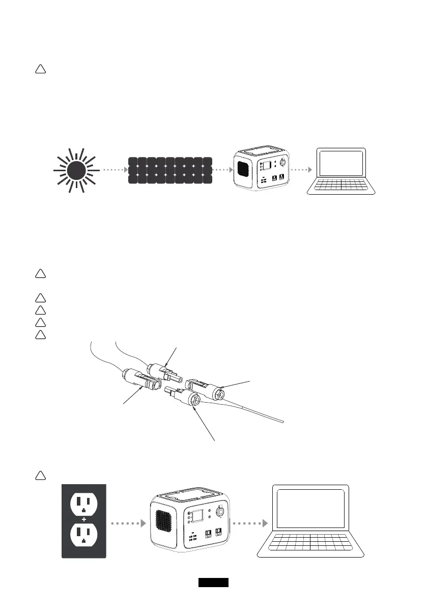 注意:ソーラーパネルの充電ケーブルをよく接続してください。下記の接続図をご参考してくだい。