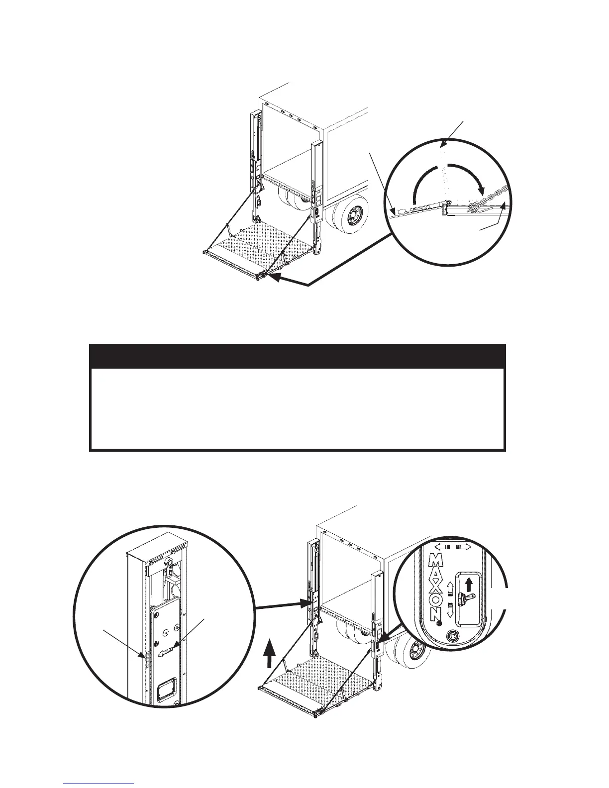 interfere with folded platform being raised to up position. Prevent