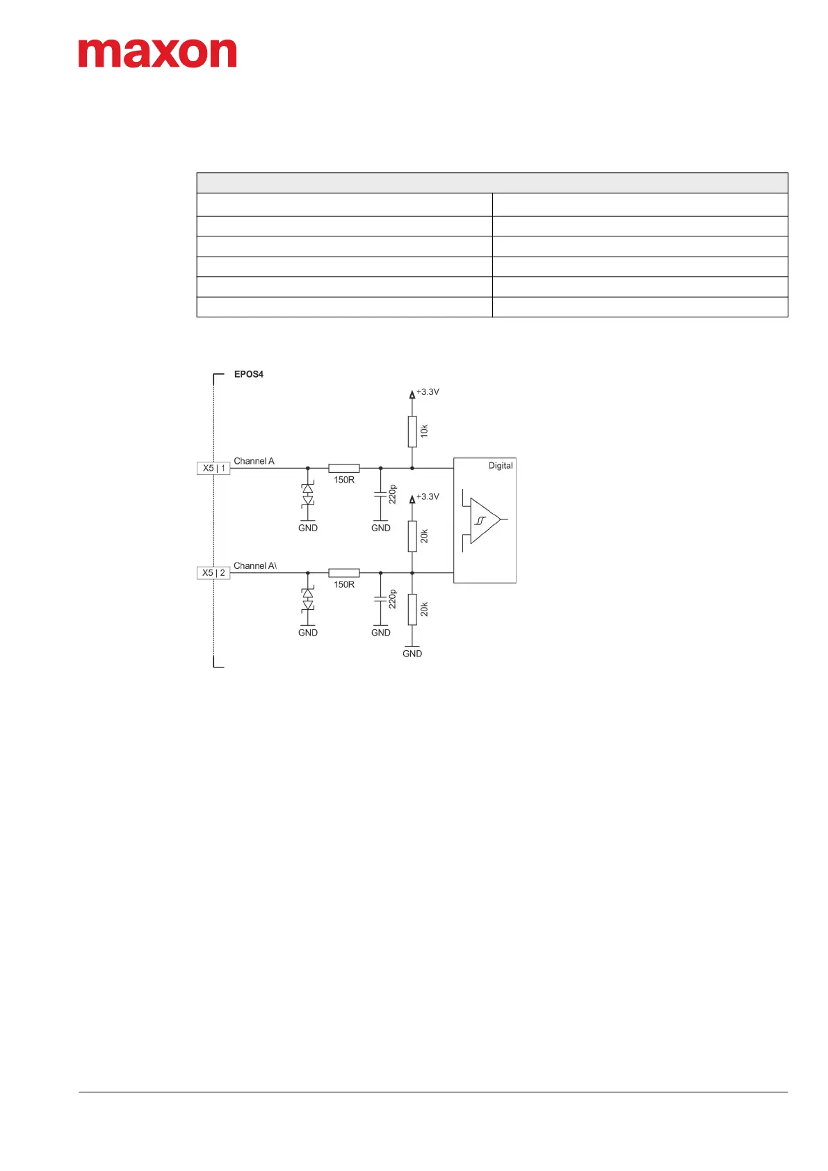 Figure 3-21 Encoder input circuit Ch A “differential” (analogously valid for Ch B, Ch I, and X5/X6)